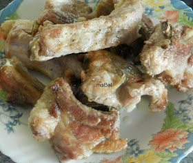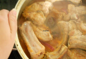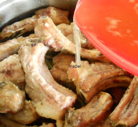 Freimos 1 kg de costillas de cerdo salpimentadas, en abundante aceite, con 3 dientes de ajo