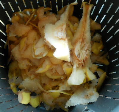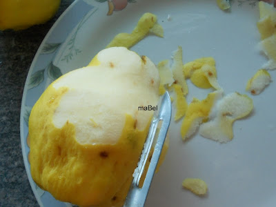 Espera!!! ni se te ocurra tirar la cascara ni las semillas!!! es muy importante porque eso es la pectina, un complemento para que el dulce se ponga duro y denso. Para hacer dulces caseros se usa pectina, aquí la tenemos en forma natural.
