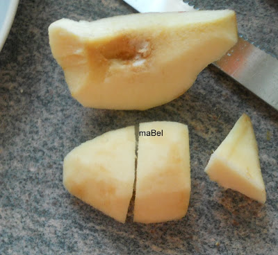 Como te explicaba, es una fruta muy dura, para quitarle la piel, usamos un pelapatatas o pelapapas.