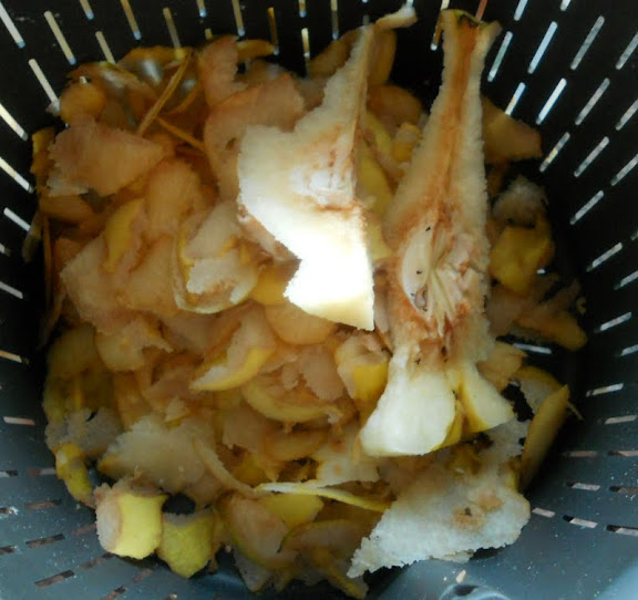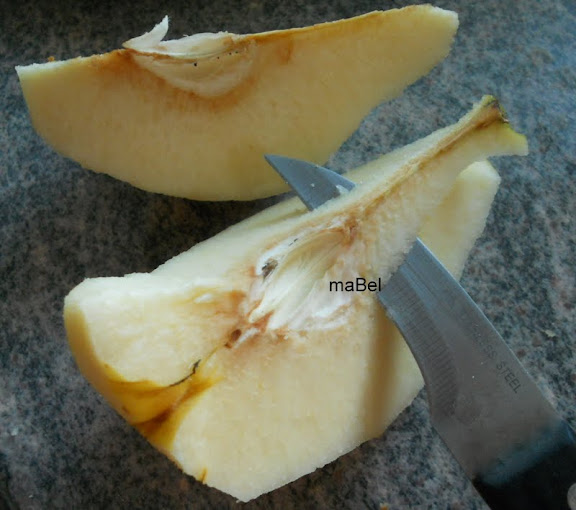 Espera!!! ni se te ocurra tirar la cascara ni las semillas!!! es muy importante porque eso es la pectina, un complemento para que el dulce se ponga duro y denso. Para hacer dulces caseros se usa pectina, aquí la tenemos en forma natural.