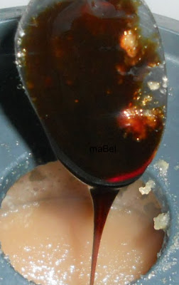 dejamos así sin tocar unos 15 minutos como mínimo, cuanto mas tiempo lo dejes descansar, mas oscuro se pondrá el dulce.