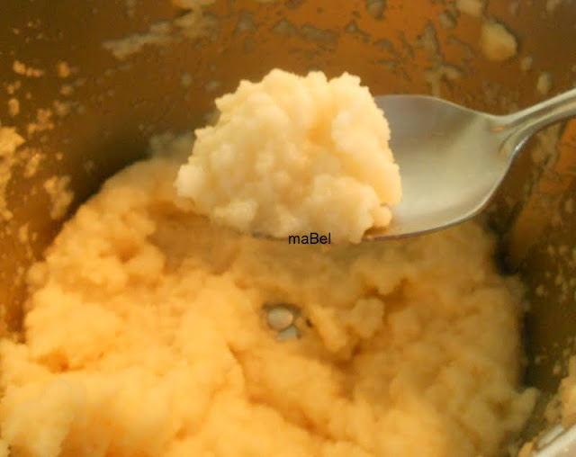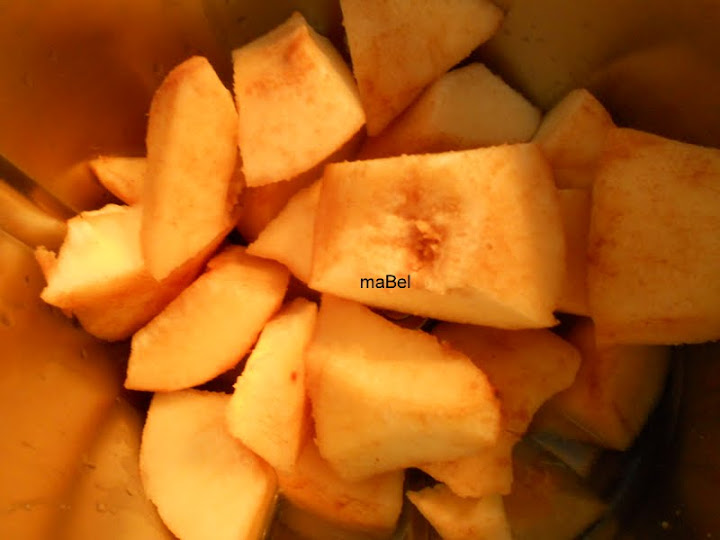 y los proceso hasta convertirlo en un puré grueso. Si no tienes procesador, puedes rallarlo con un rallador común. En este caso de que lo hagas con rallador, hazlo con la fruta entera y pelada, ya que te manejaras mejor.