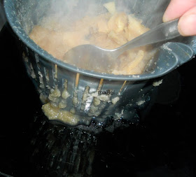 Una vez pasado ese tiempo, recuperamos el cestillo y quitamos toda la pulpa adherida, es mejor en un colador .