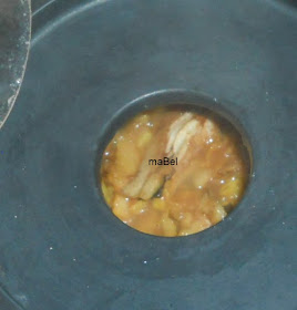 espiamos y vemos que el liquido del dulce hace efecto sobre las cascaras y semillas que pusimos en el cestillo y también se cocinan