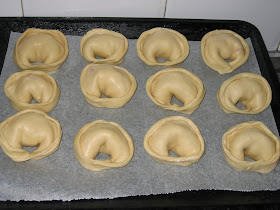 ponemos sobre papel manteca ( esto hace que la empanada no se abra ) y llevamos a horno 190º o las freimos ( son mas ricas fritas!!!)