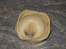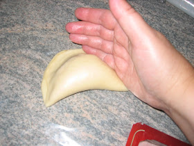 doblamos por la mitad encerrando el relleno y ajustamos con el canto de la mano los bordes