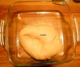 Una vez formada la masa, la extendemos sobre un molde redondo o rectangular untado con aceite o mantequilla, dejandola mas o menos de 1 cm de espesor.