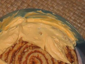 dulce de leche , almendras y mousse de mango super facil.Primero parto de un pionono