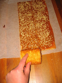 Emparejo los costados y corto 6 tiras iguales, (o bien hacer 2 piononos y cortar en 3 tiras si queremos la torta mas alta)