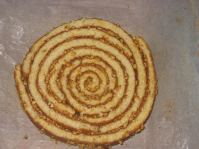 cuando la terminamos de enrollar, la ponemos al comienzo de la tira siguiente y continuamos enrollando