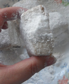 cuando se enfrían, quedan como glaseadas, para que vuelvan a quedar con esa capa de azúcar, le ponemos mas por encima, por todos lados , pasamos el dedo, y se queda el azúcar pegada