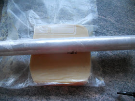 llegado este paso estiramos del grosor que querramos darle a las hojaldrinas, 1 cm a 2 cm de alto