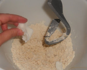 Luego, agrego la manteca de cerdo que está a temperatura ambiente, en trocitos