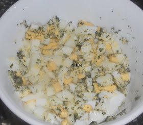 para aliñarlas, coloco un par de dientes de ajo, que los coloqué 30 segundos en microondas, perejil picado, huevo duro picado, sal, y bastante aceite de oliva virgen extra