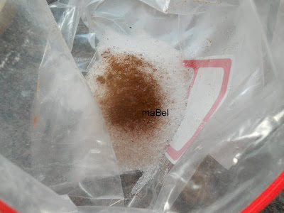 Mientras se está horneando, Mezclamos 5 cdas de azúcar con 1 cdita de canela, dentro de una bolsita plástica