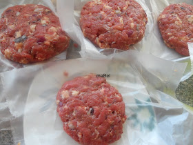 La parte grasa se la doy picando bacon o panceta, muy chiquitito, para 1 kg de carne corresponden 150 gr de esta grasa.