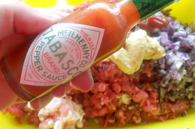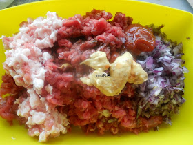 Probamos a ver que tal está la mezcla, sí, prueba la carne cruda, es la única manera de saber si le falta algo
