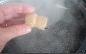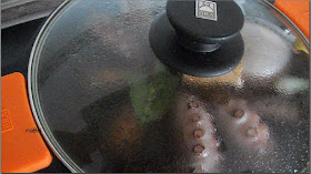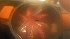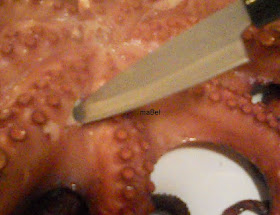 volvemos a meterlo, contamos hasta 3 y lo sacamos. Esto es para que el pulpo se "acostumbre" de a poco al calor, de esta manera la piel no se nos rompe y queda bonito.
