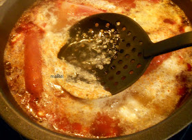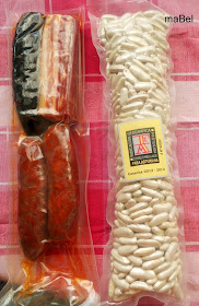 junto con las fabas, el compango ( chorizos, morcilla, panceta) y además le agrego puntas de jamón y un par de chorizos mas, porque los tenía en casa ( mis hijos se pelean porque quieren uno entero y nos dejan a los demás sin nada), pero no hace falta colocarle nada mas porque da suficiente sabor el conjunto, no olvidemos que hablamos de productos de calidad suprema.