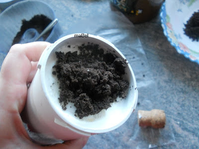 subo el émbolo hasta arriba, de manera que sólo quede 1/2 cm, y ahí relleno con la pasta de oreo