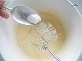 un poco de levadura quimica o polvo Royal, y 4 cdas de harina