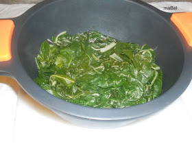 para 200 gr de hojas cocidas y estrujadas le pongo unos 100 gr de queso untable, 2 huevos, 2 cdas de queso rallado, sal, pimienta y nuez moscada