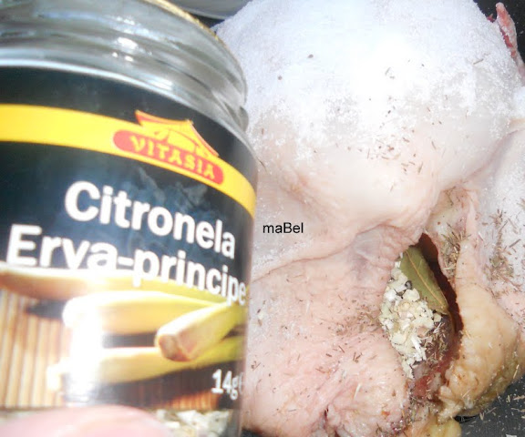 una hoja de laurel, media cucharada de tomillo, y zumo de limón, o lemongrass (especia con sabor a limón), (un condimento que también podría ser, con aroma a limón es el zumac)