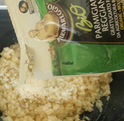 una vez pasados los 15 minutos, retiramos del fuego ( el arroz debe quedar al dente, por eso lo ponemos 5 minutos menos de cocción, si te gusta mas hecho, entonces lo cocinas mas). Agregamos 2 cdas mas de mantequilla y dejamos que se funda con el calor del arroz