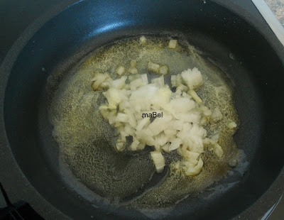 Corto muy pequeñito 200 gr de setas y la agrego a la cebolla, hasta que pierdan rigidez.