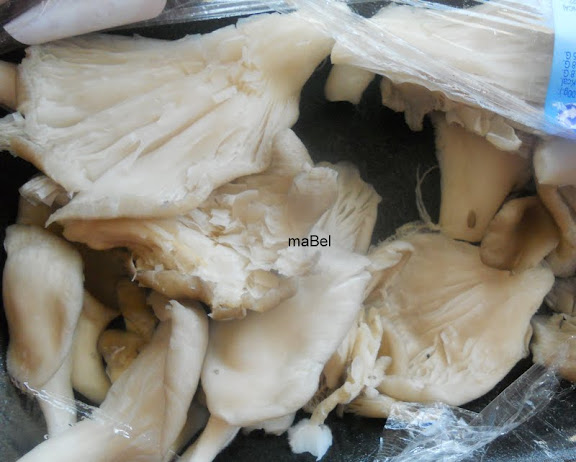 Corto muy pequeñito 200 gr de setas y la agrego a la cebolla, hasta que pierdan rigidez.