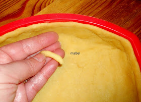los bordes de la masa tienen que ser altos, ya que la vamos a rellenar. Cortamos trocitos de masa, hacemos unos choricitos, y lo vamos uniendo
