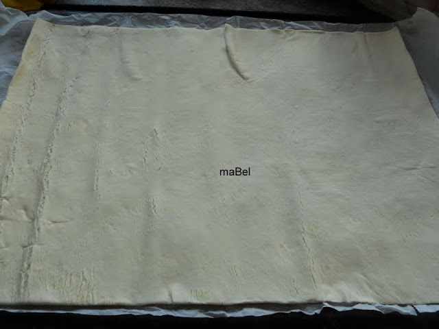 El hojaldre lo dividimos en tres partes iguales, y lo cortamos en 3