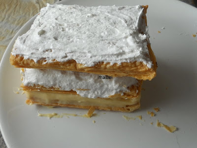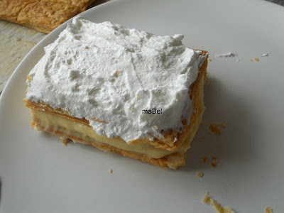 Hay mucha variedad de postres hechos con hojaldres y pastelera, tenía un hojaldre en casa, crema pastelera que me había sobrado, y no tenía claro que hacer. Una amiga de facebook, Dunia, me recomendó Pantxineta (es un postre vasco), cuando ya me había decidido, mi marido me dijo que quería costrada... que va con merengue. Puesta a investigar mas, encontré un postre muy similar esloveno, que se llama kremsnita, y que se hace también parecido a la costrada, pero en vez de merengue, lleva nata montada con azúcar o crema chantilly, y el hojaldre del medio desaparece. En Argentina, a la bolleria en general, se la llaman facturas, hay una que es de hojaldre, rellena con crema, y por encima se le coloca maní o cacahuetes picados y se espolvorea con azúcar glase o impalpable. Y seguramente habrá mas en distintos países.