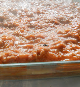 Horneamos a 180ºC 20 minutos, tapado con papel de aluminio, para que no se seque la salsa de arriba