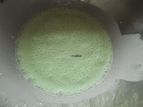 Nota: En la receta original, usan jarabe de menta. Si tienes jarabe de menta usa unos 100 gr, y se los quitas a la parte de la leche, con esto no te haria falta la esencia ni el colorante.