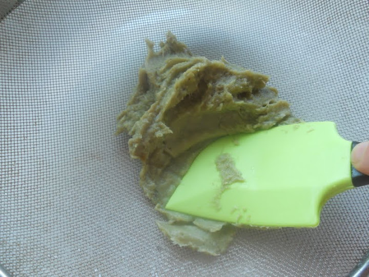 y lo pasamos por un colador o cedazo, para quitarle las fibras y nos quede un puré fino