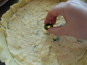 y alrededor de ese rulito, vamos agregando mas tiras de calabacín de manera de completar la tarta. Si no entiendes este procedimiento, mira el video que puse en la parte superior de la receta.