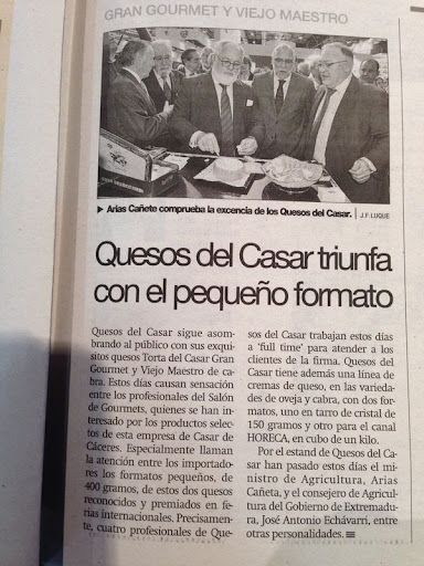 En este resumen video, de la Tv de Extremadura, Al fondo se puede apreciar el stan de Quesos del casar, y la degustación del ministro Arias Cañete con Mario B.R.. Y atentos a la mano que mueve la crema de la torta del casar!! pues si! es la mia!!