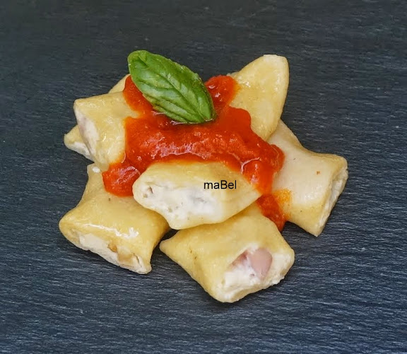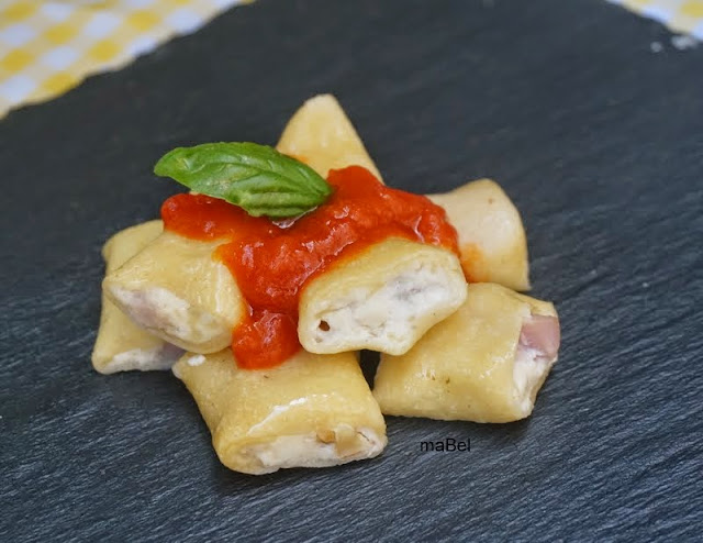 Curiosidad!!! esta misma pasta se puede hacer usando las placas de lasañas precocidas e hidratadas, o la de canelones. Lo bueno es que rinden mas que haciendo lasañas o canelones, porque es mas masa y menos relleno.
