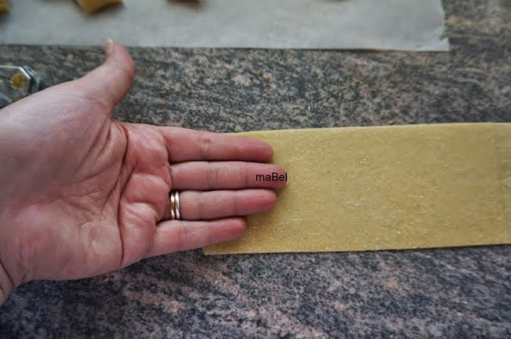 Estiras la masa lo mas fina que puedas, si no tienes maquina, usa el palo como siempre. Te aconsejo estirar de a pequeños bollitos, para que no se seque